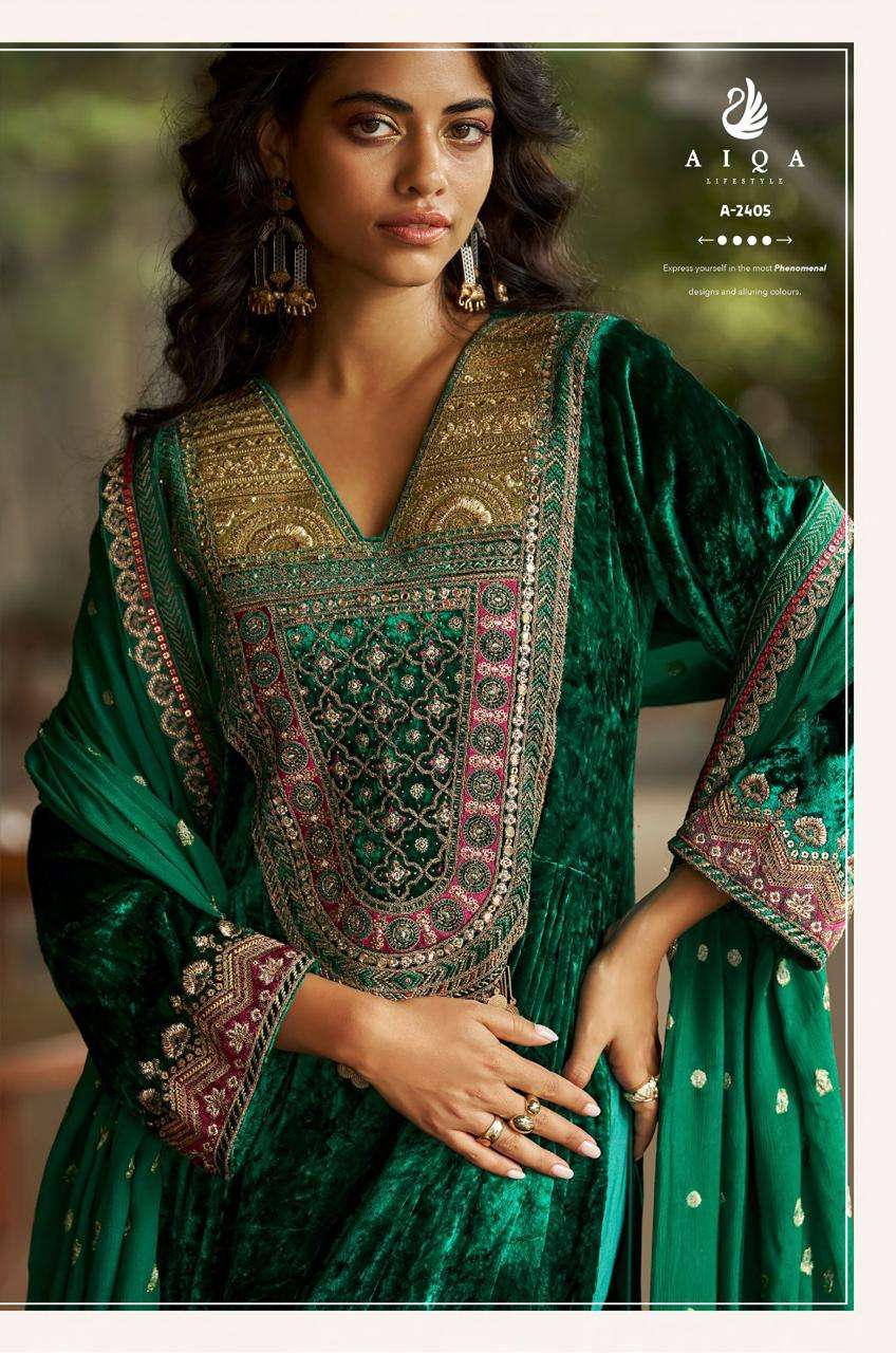 Aiqa Qealiz Partywear Style Velvet Designer Suit | A – 2405