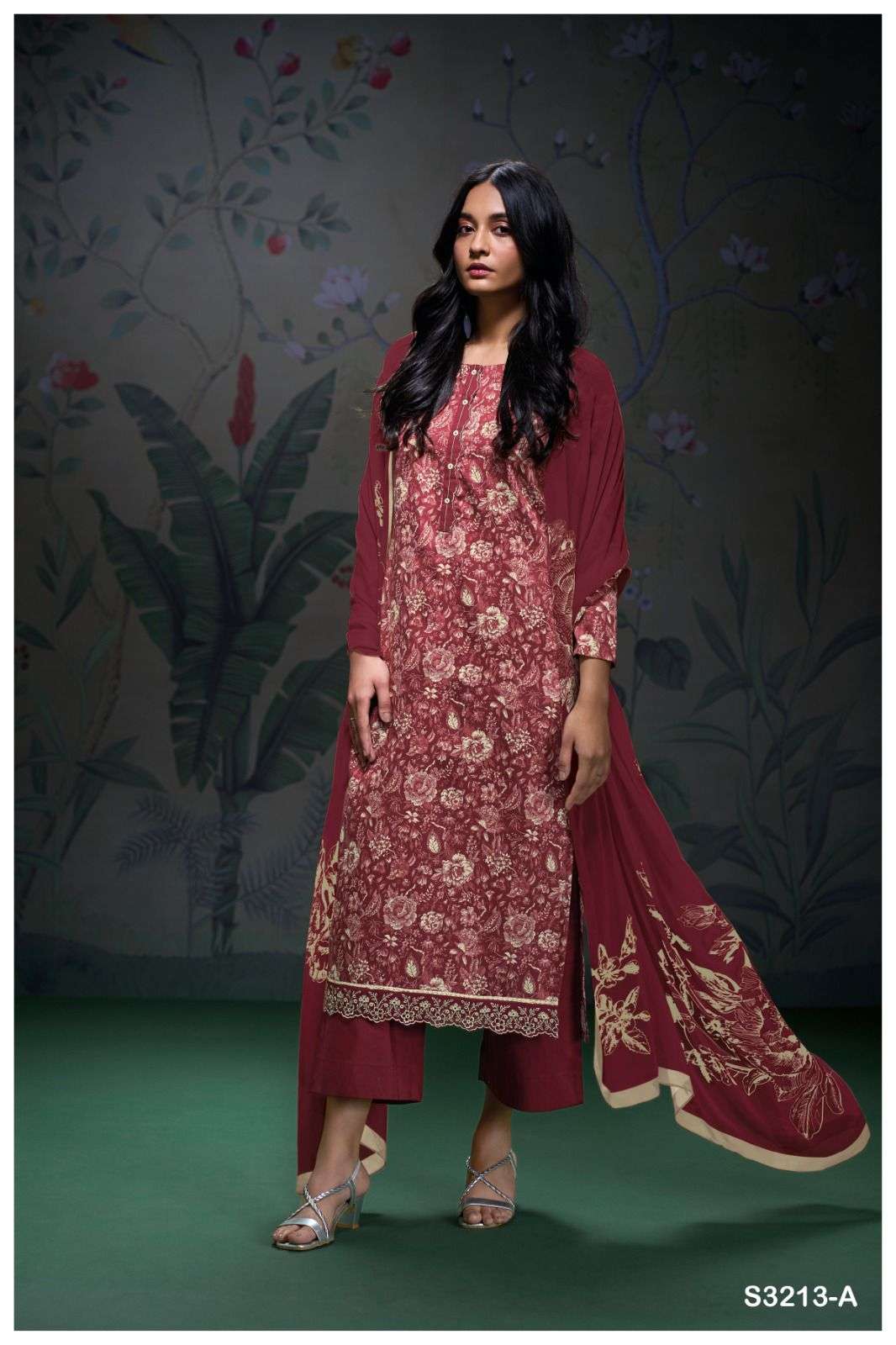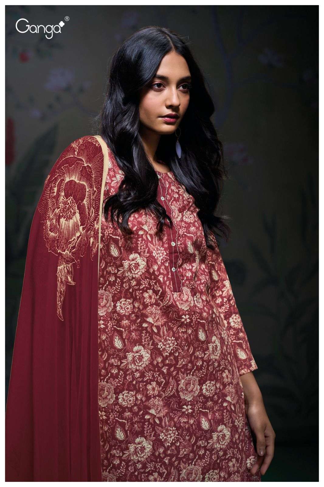 Ganga Fashion Aariya Printed Cotton Satin Premium Suit | S3213 – A