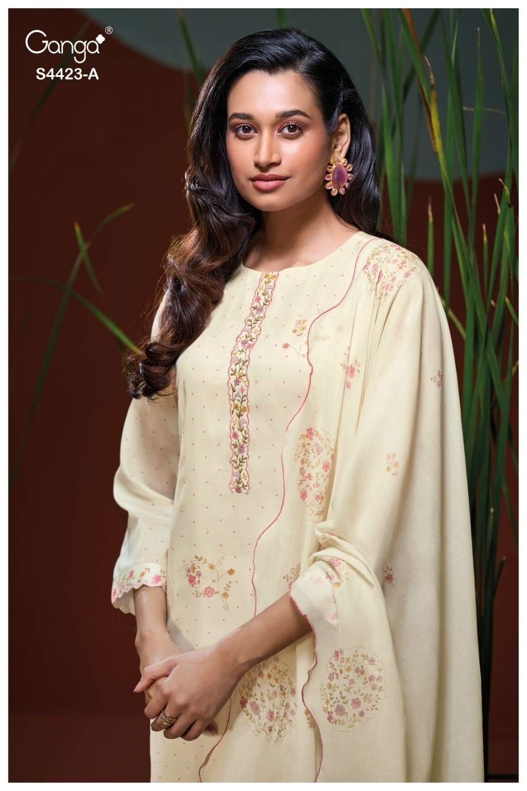 Crafted in premium pure fabric, the fabric offers a luxurious sheen, fluid drape, and an undeniably regal appeal. This ganga collection is known for its sophisticated colour palette and intricate weaving, making this suit a standout choice for festive dressing and elegant evenings.