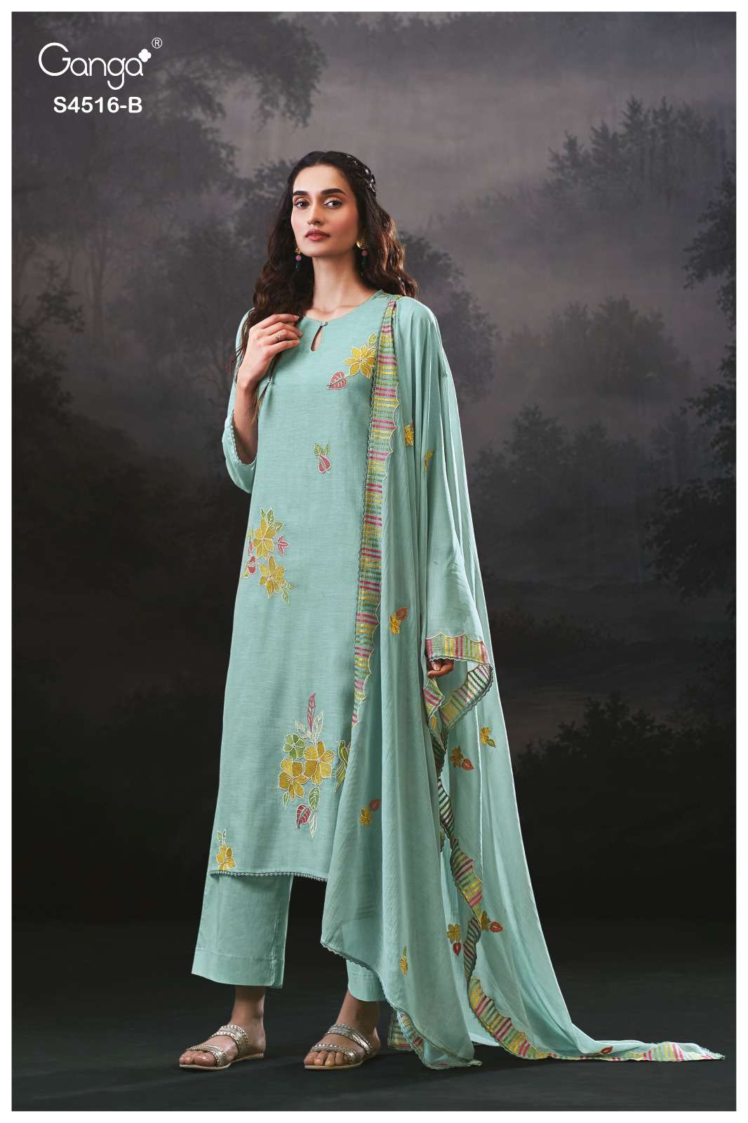 Crafted in premium pure fabric, the fabric offers a luxurious sheen, fluid drape, and an undeniably regal appeal. This ganga collection is known for its sophisticated colour palette and intricate weaving, making this suit a standout choice for festive dressing and elegant evenings.