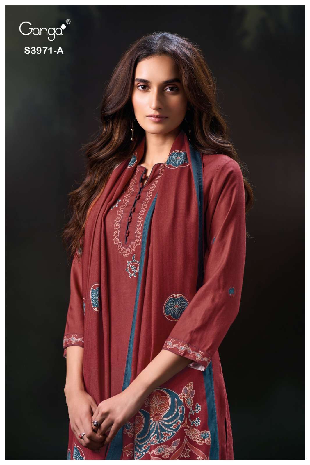 Ganga Fashion Evani Winter Wear Pure Wool Pashmina Suit | S3971-A