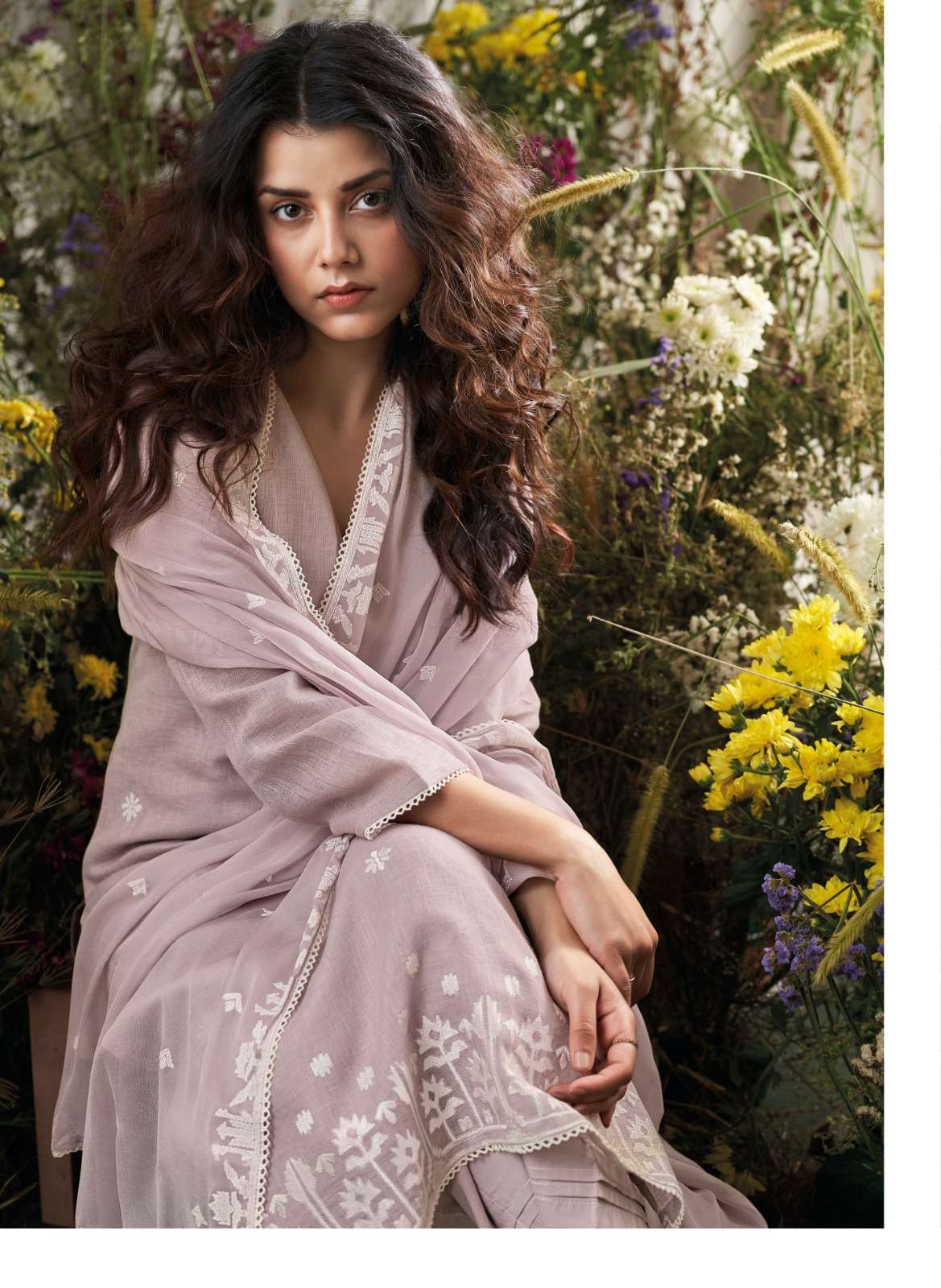 Crafted in premium pure fabric, the fabric offers a luxurious sheen, fluid drape, and an undeniably regal appeal. This ganga collection is known for its sophisticated colour palette and intricate weaving, making this suit a standout choice for festive dressing and elegant evenings.