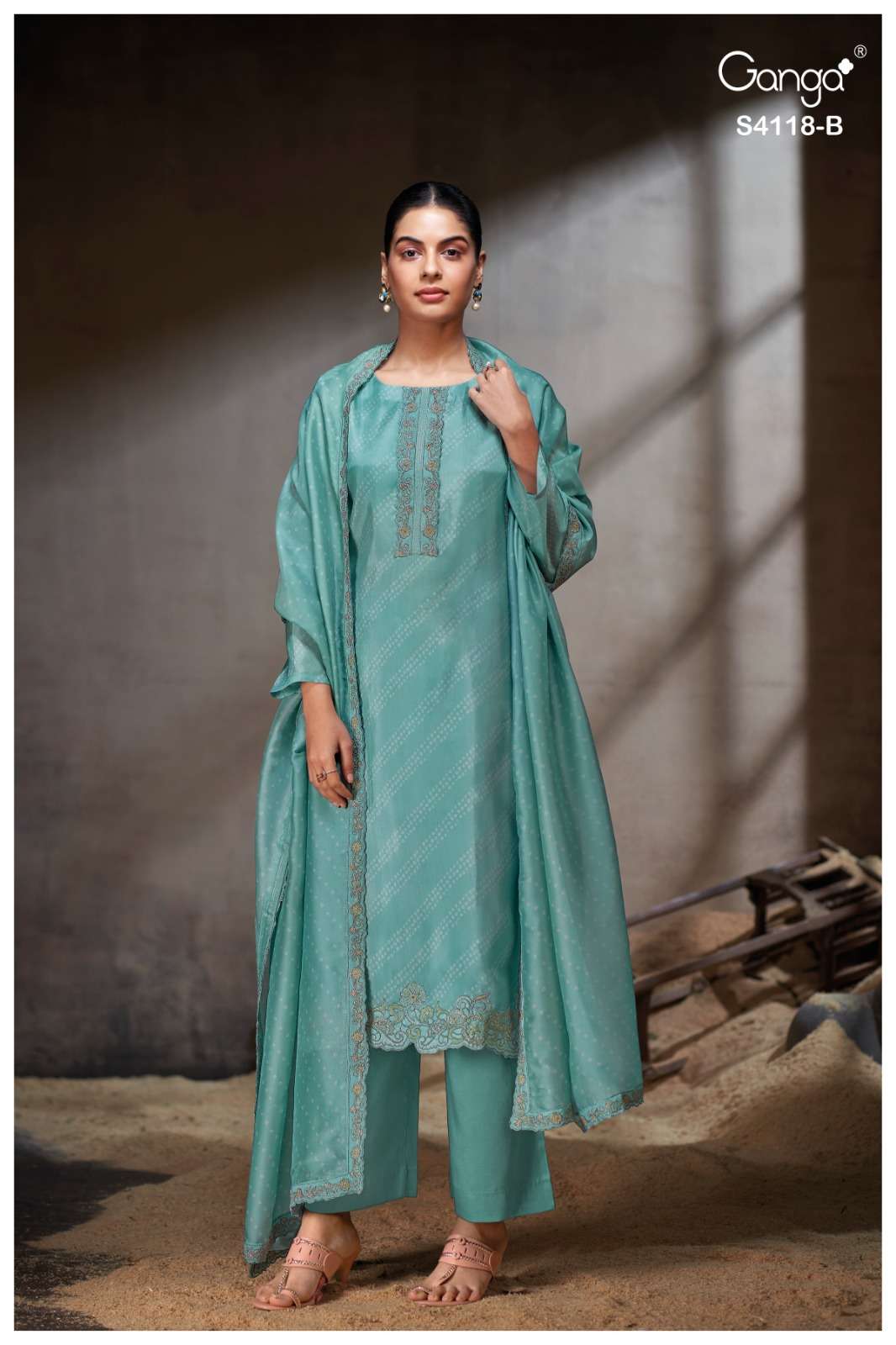 Ganga Fashion Ziyaara Pure Bemberg Designer Suit | S4118 – B