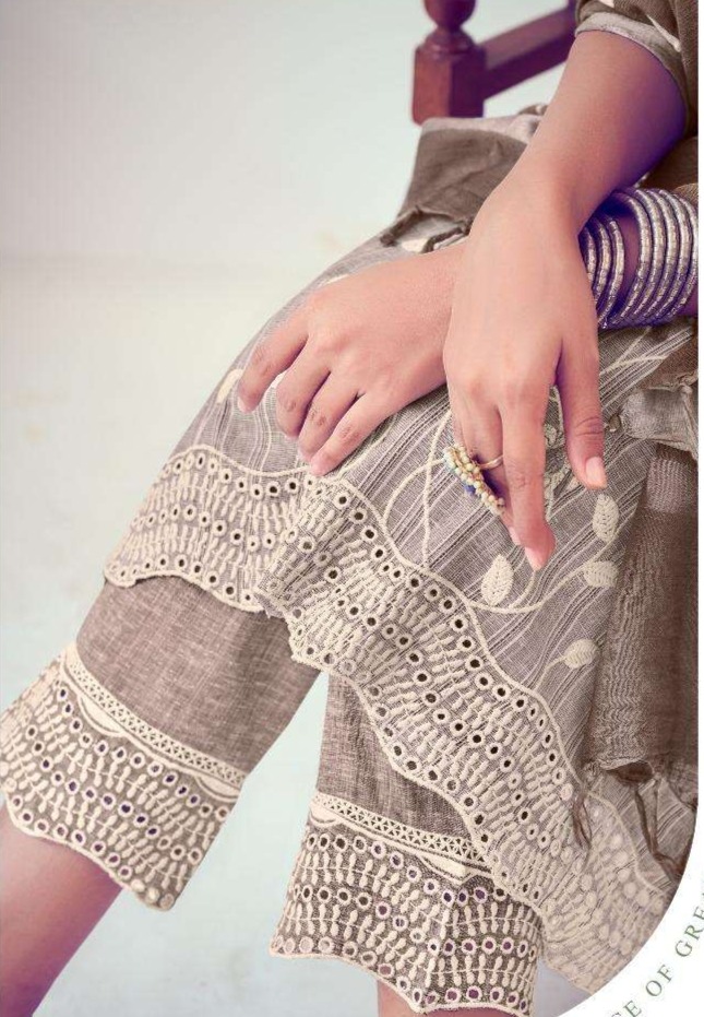 TOP: Pure Soft Cotton Lining With Fancy Embroidery And Lace Work BOTTOM: Pure South Cotton With Embroidery Patti On Lace Work DUPATTA: Pure Linen Slub With Block Print And Latkans