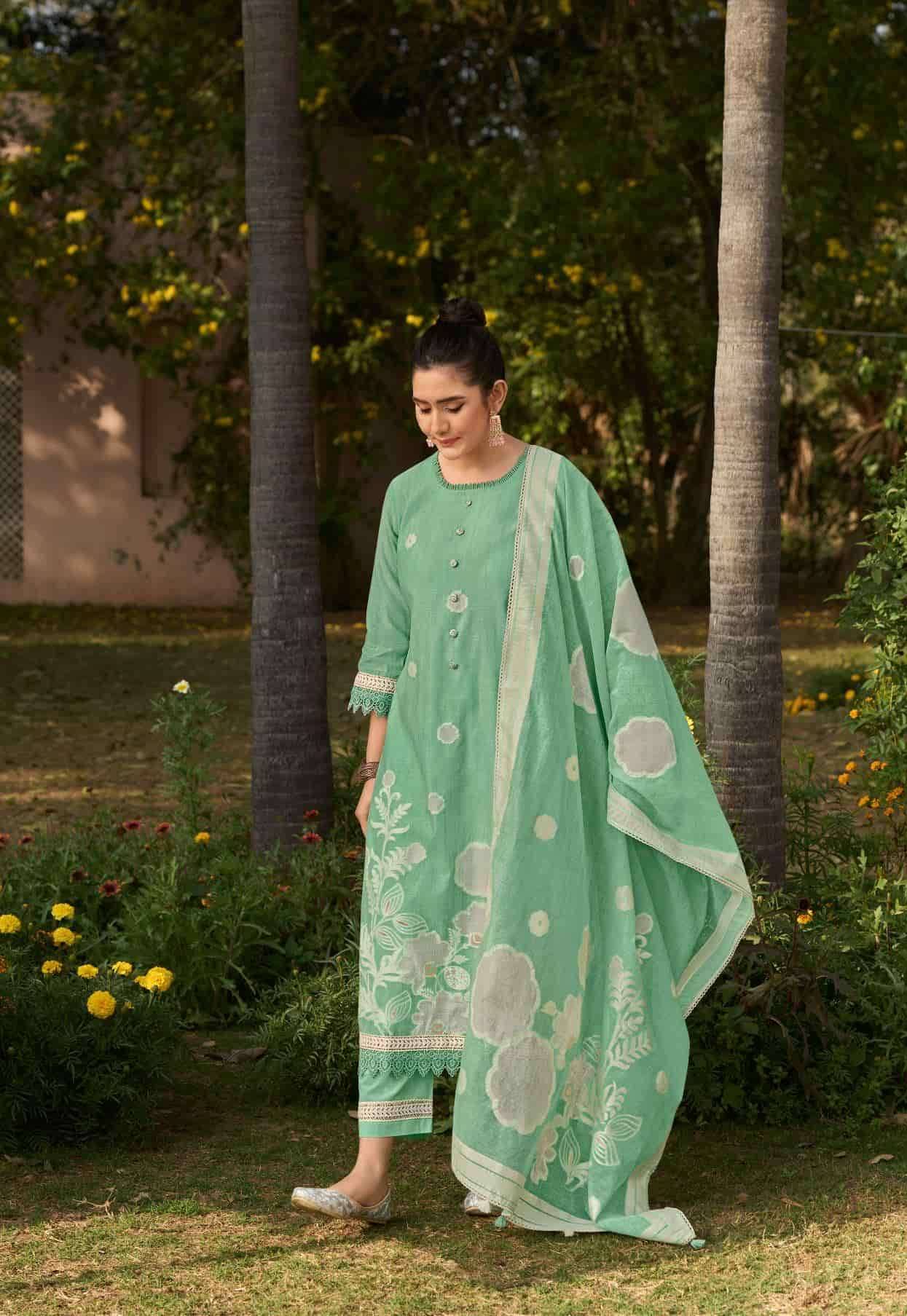 | Dupatta: | pure soft cotton jacquard with fancy lace hangings |