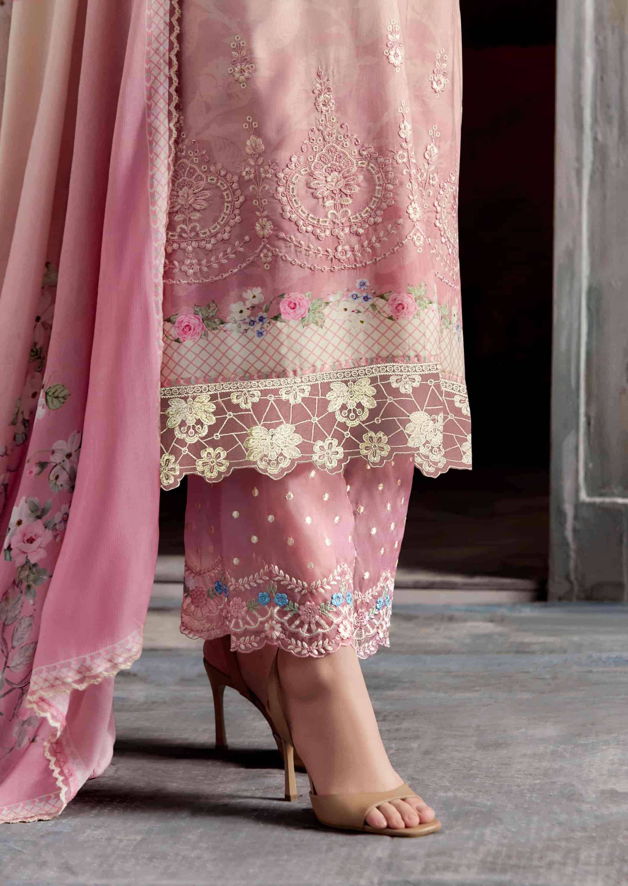 | Dupatta: | pure chinon with digital print and four side scalloped organza resham embroidery border |