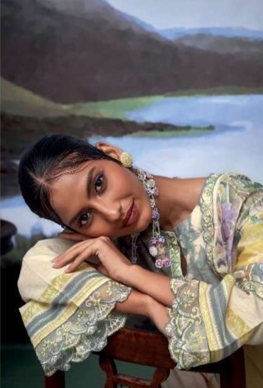 - Bottom: Pure lenin with digital print and four sided scalloped embroidery organza border