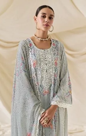 Kimora Mohabbat Pure Muslin Digital Print And Dori Embroidery Suit | 9442