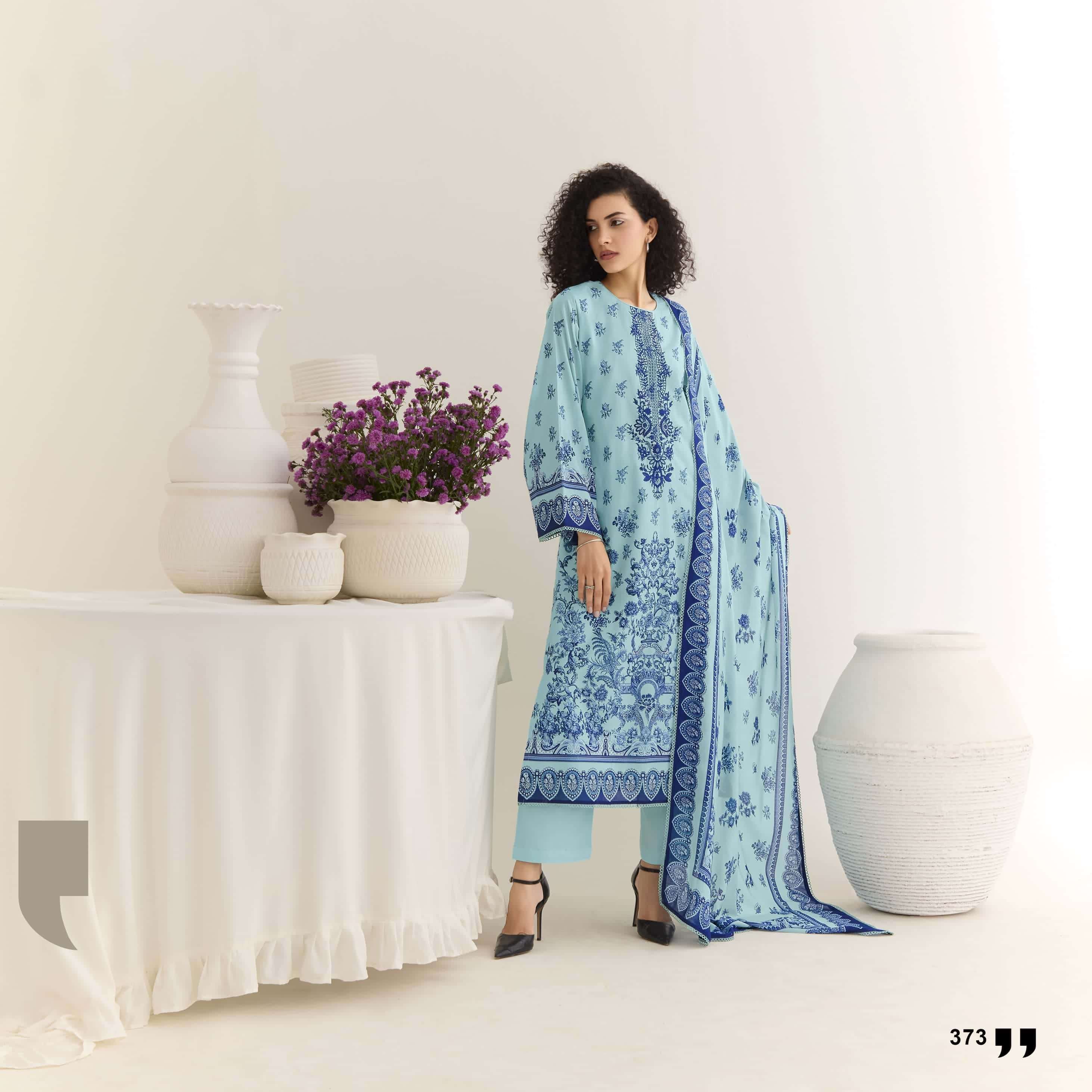 | Top: | pure cotton lawn with digital print embroidery neckline and scalloped lace on hemline and sleeves |