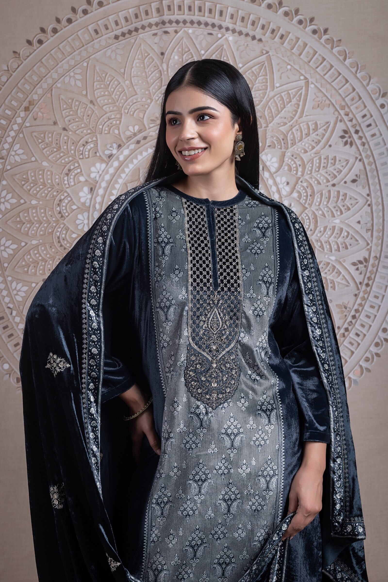 TOP Premium velvet BOTTOM: Pashmina DUPATTA: Fancy Embroidery