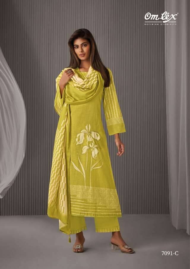 Omtex Cherry Fancy Work Linen Cotton Dress | 7091 – C