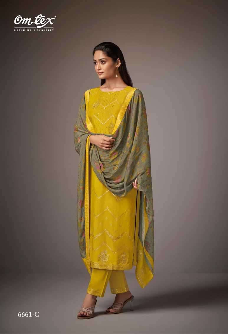 Omtex Tahira Designer Jacquard Muslin Suit | 6661 – C