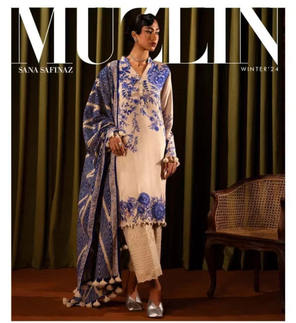 The Sana Safinaz Muzlin Unstitched Winter 2024 collection features a stunning array of designs that beautifully blend traditional aesthetics with modern sensibilities. This collection typically includes rich fabrics adorned with intricate embroidery, vibrant colors, and elegant patterns, perfect for the winter season.