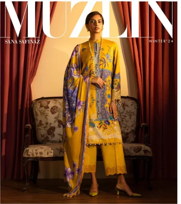 The Sana Safinaz Muzlin Unstitched Winter 2024 collection features a stunning array of designs that beautifully blend traditional aesthetics with modern sensibilities. This collection typically includes rich fabrics adorned with intricate embroidery, vibrant colors, and elegant patterns, perfect for the winter season.