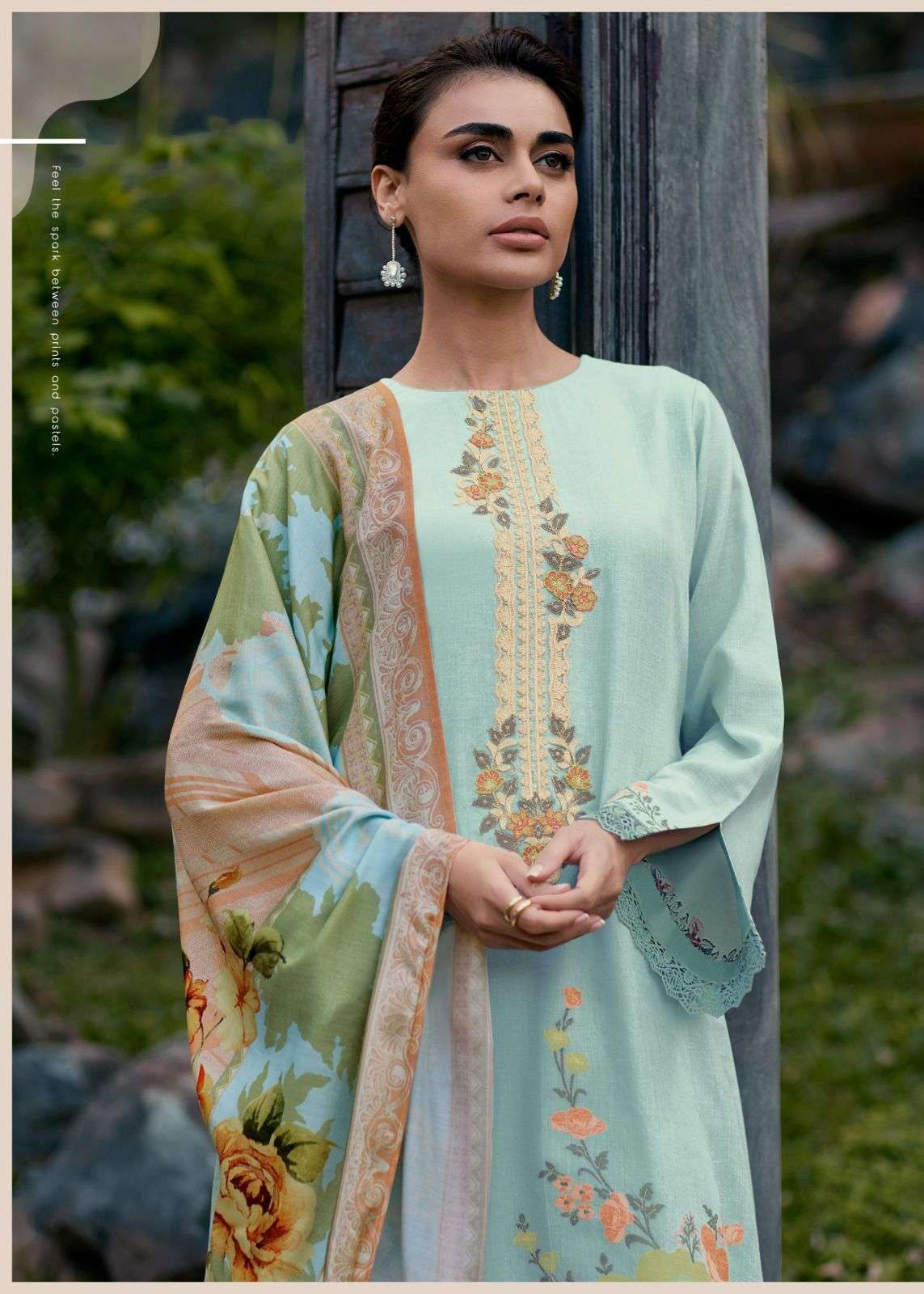 For a Valentine who prefers understated elegance, choose pastel-toned suits with delicate zari or threadwork exclusive Pakistani Lawn Collection - Fusion Styles