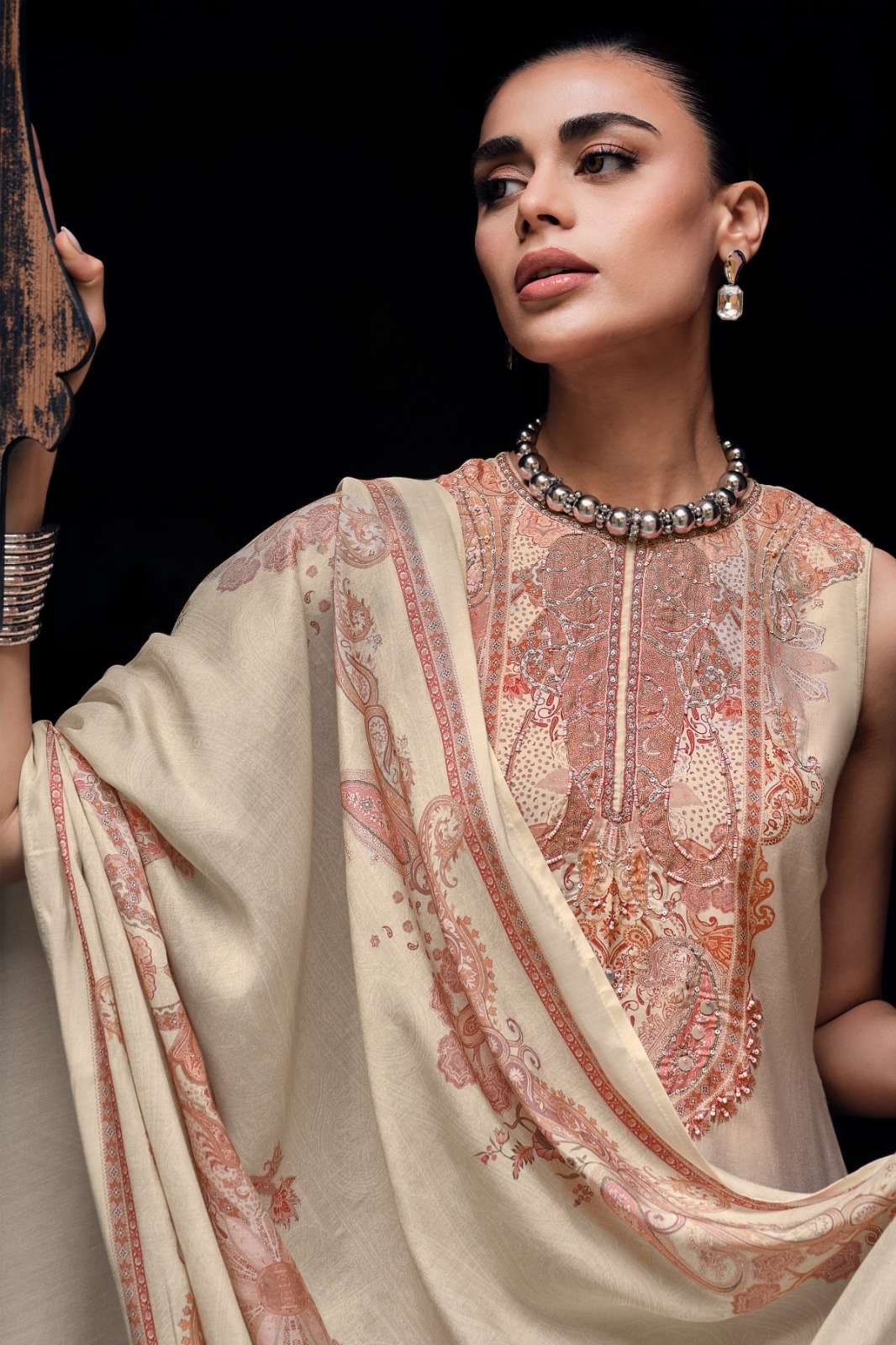 | Top: | viscose muslin digitally printed with oxdised handwork |
