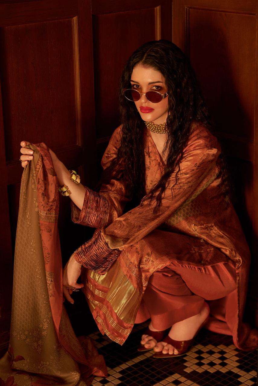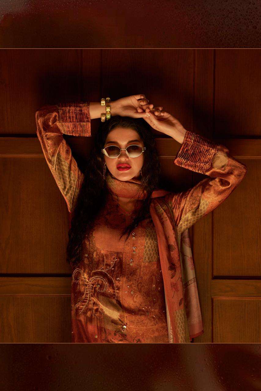 Make your Eid/Valentine’s celebrations extra special with the Varsha Golden Berry Exclusive Style Gajji Silk Suit Soft, graceful, and festive-perfect — order now to receive it in time.