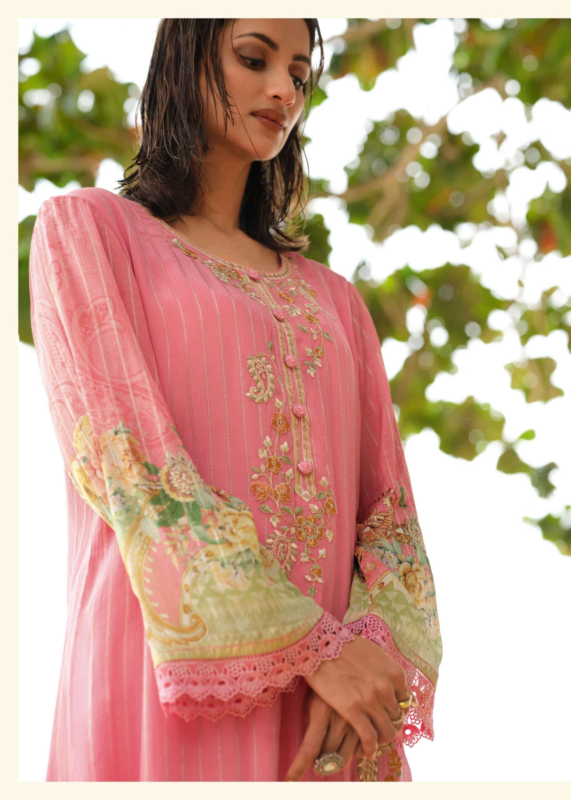 Make your Eid/Valentine’s celebrations extra special with the Varsha Gulzaar Exclusive Chinon Chiffon Latest Suit. Soft, graceful, and festive-perfect — order now to receive it in time.
